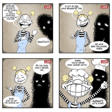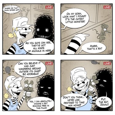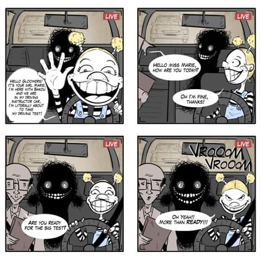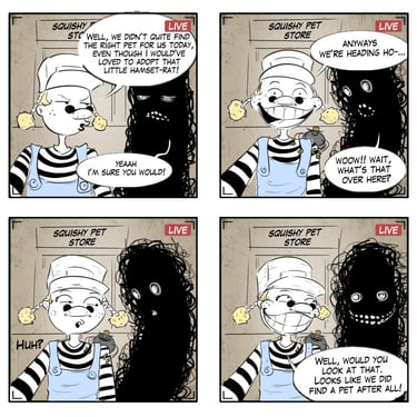 "Gloomy Marie" explores the whimsical and slightly dark relationship between a young girl and her imaginary friend, Bakoucha. This gallery demonstrates my versatility in character and animal design, as well as my experience with the Yonkoma (4-panel comic) format. Through book cover concepts and sequential art, I focus on expressive acting and the atmospheric storytelling required for children's books and graphic novels.