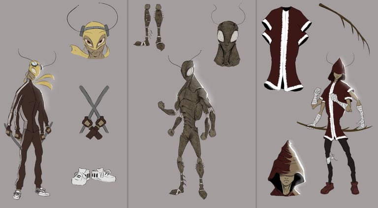 "Sorsor" is a bold fusion of Moroccan culture and classic superhero tropes. The story follows a half-man, half-cockroach protagonist navigating a gritty, urban environment. This project showcases a full production pipeline: from initial character design and turnarounds to villain line-ups and final sequential manga pages. It highlights my ability to build a cohesive visual world with a focus on anatomy, costume details, and dynamic storytelling.